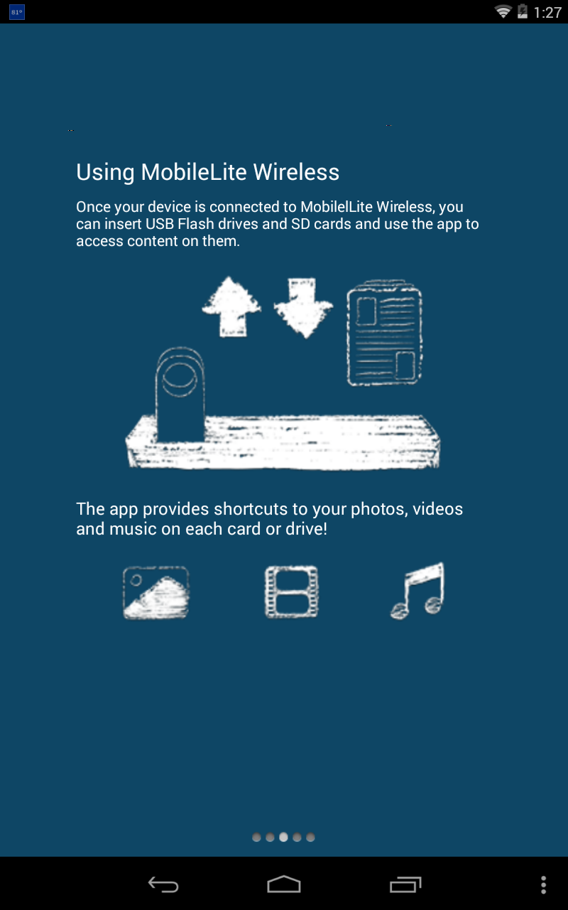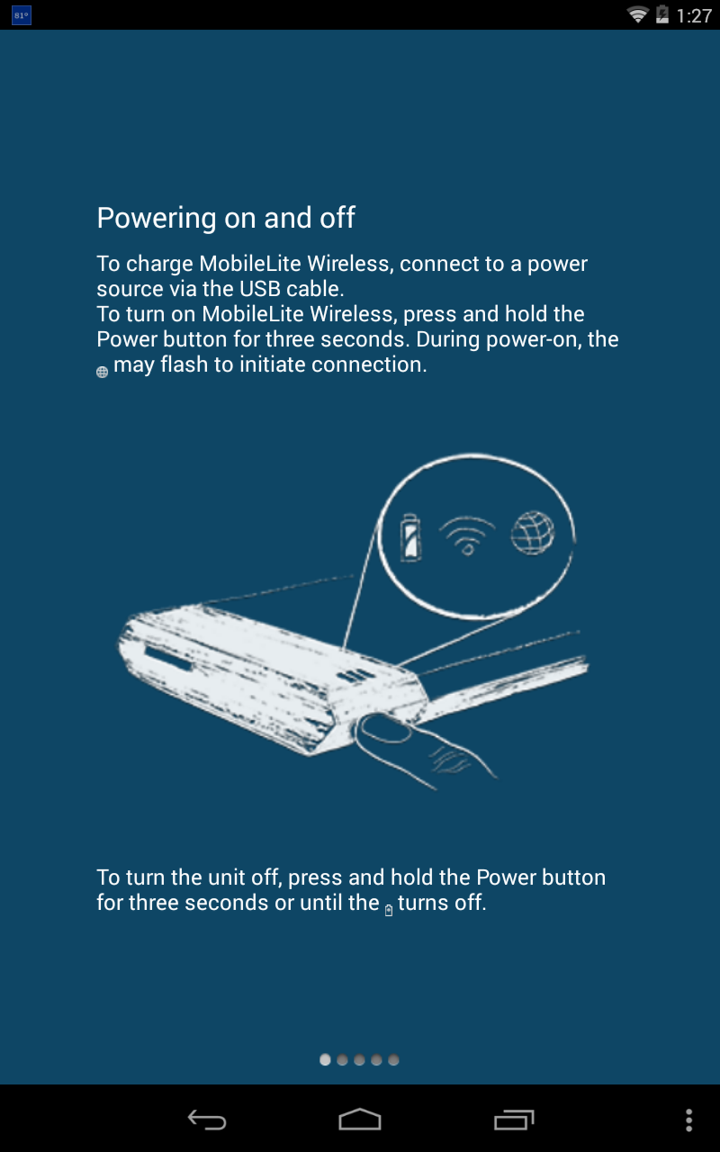 When the app is launched it gives you a quick tutorial on how to use the device. In order to actually connect the MLWG2 to your device you have to connect via WiFi SSID of the device. This does cause you to lose internet connection, however using the Ethernet port or 3G dongle will allow you to continue using internet as well.