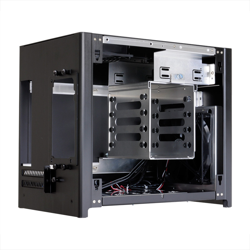 For DIY builders who like to tweak and modify the internals of cases, both of the PC-Q28’s hard drive cages are removable with a few twists of thumbscrews and screws. This gives an internal blank compartment for modding enthusiasts.