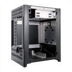 The PC-Q27 features passive cooling design, due to less heat generation from Mini-ITX systems. Significant ventilation along the bottom and rear of the chassis keeps the internal components cool. For users who do want additional cooling, a 120mm fan can be installed on the bottom of the PC-Q27 once the bottom hard drive cage is taken out.