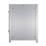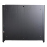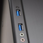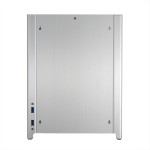 Also, similar to the PC-Q27, the front of the PC-Q28 features the elegant brushed aluminum look that Lian Li is known for, with a dual LED illuminated power button. Two USB 3.0 ports and HD audio connections are located on the right side of the front of the chassis.