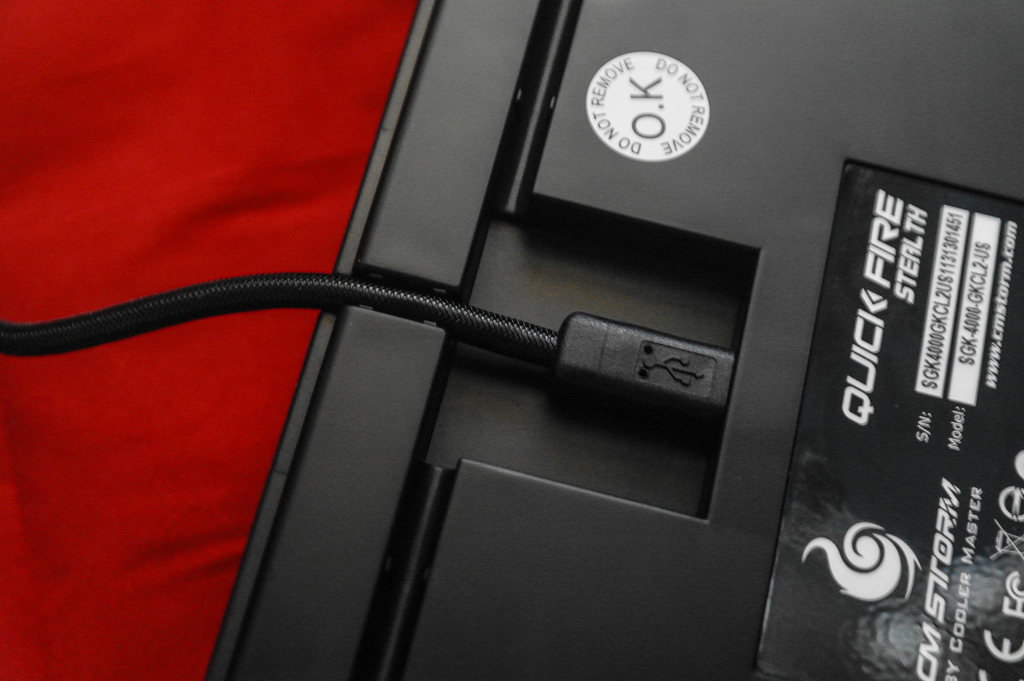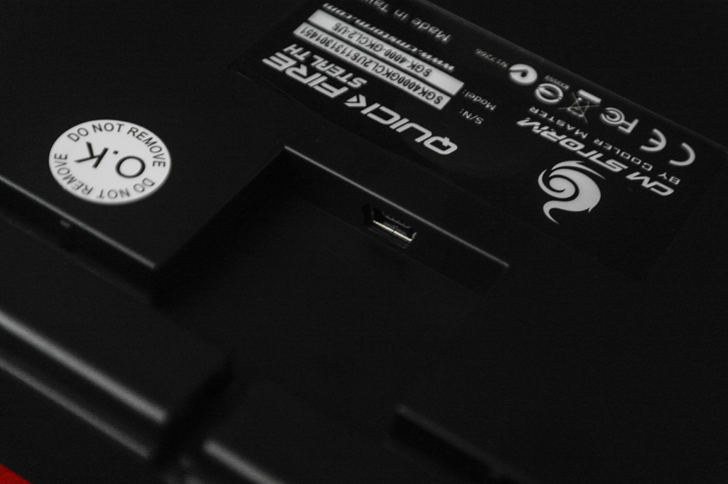 Here we also have the microUSB input, which is removable if you need a longer/shorter cable – a brilliant feature in case the USB cable malfunctions. There is also the thoughtful addition of cable grooves to tuck the USB cable and prevent it from wobbling the keyboard: