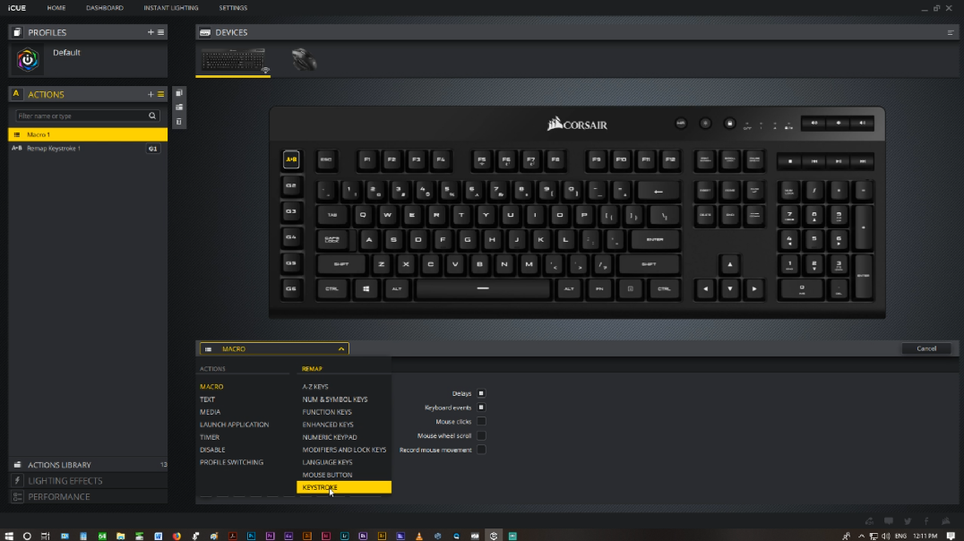 Once in the iCue software it is very straight forward and easy to learn. The Actions tab is where you will adjust all your macros and key remapping.