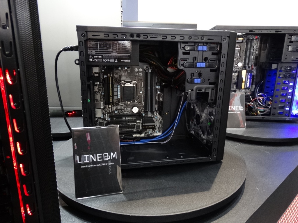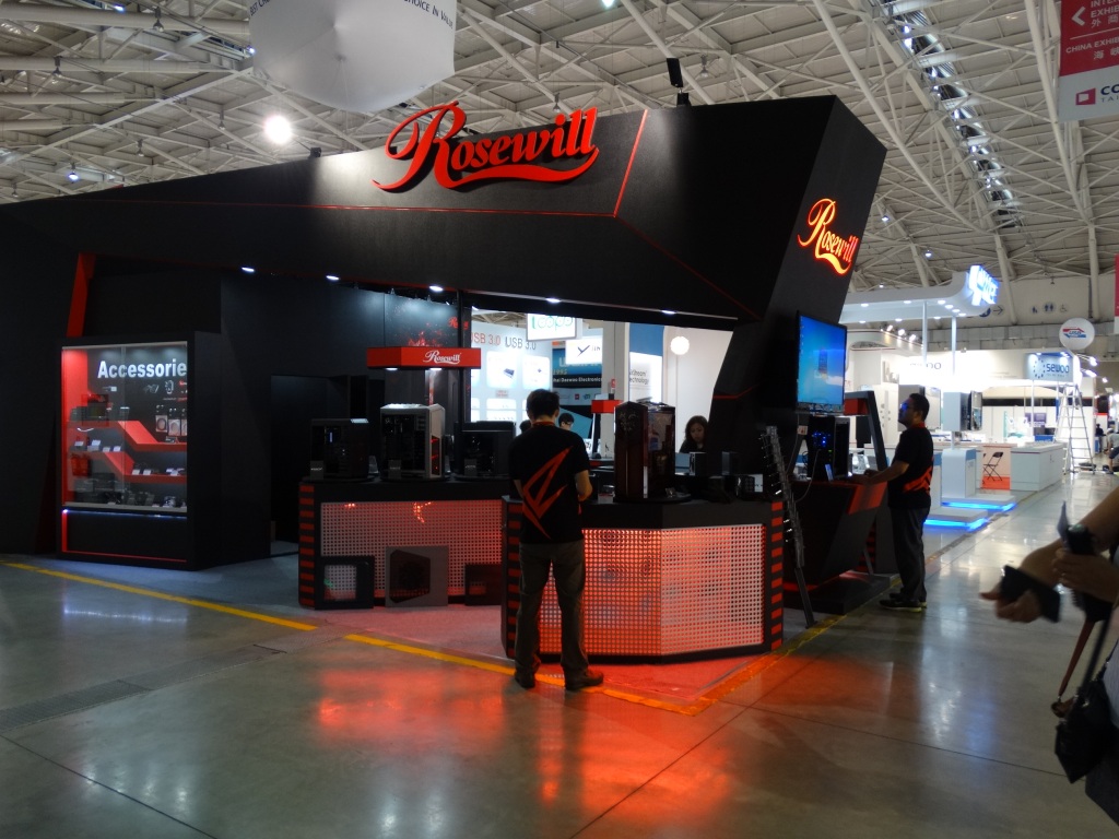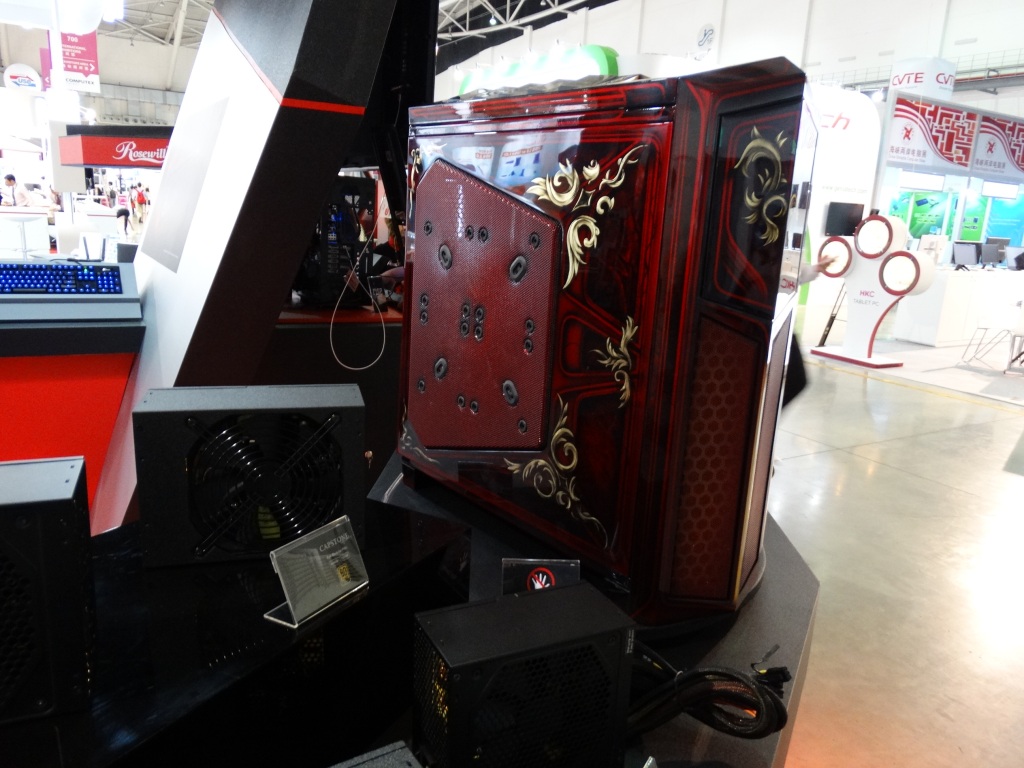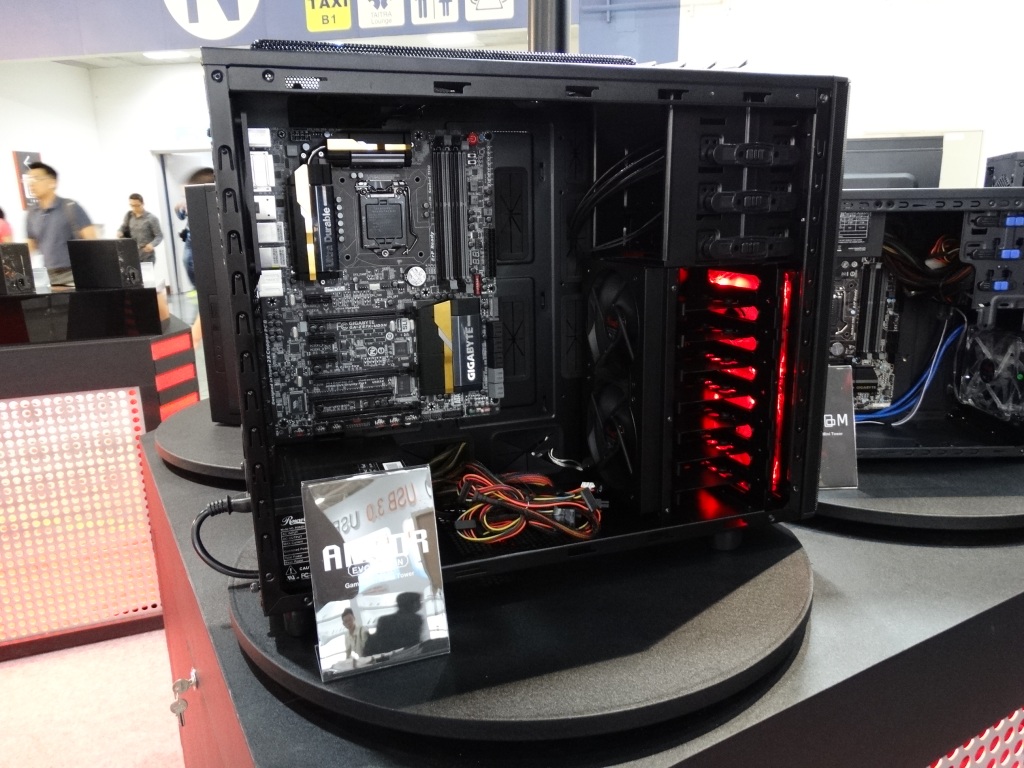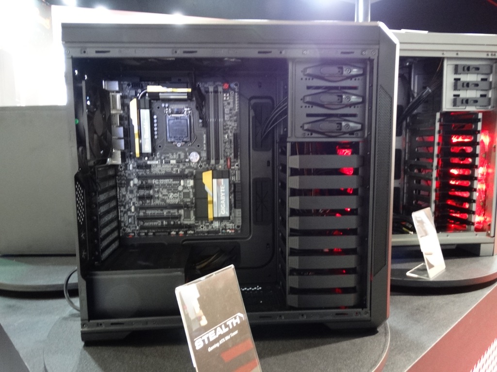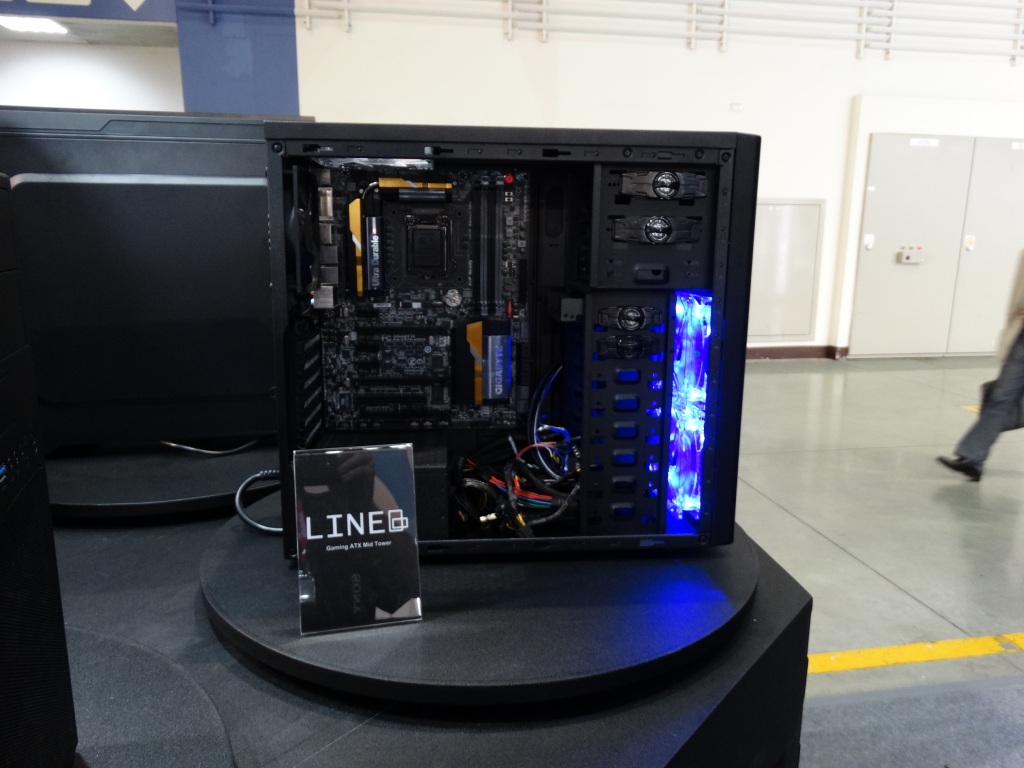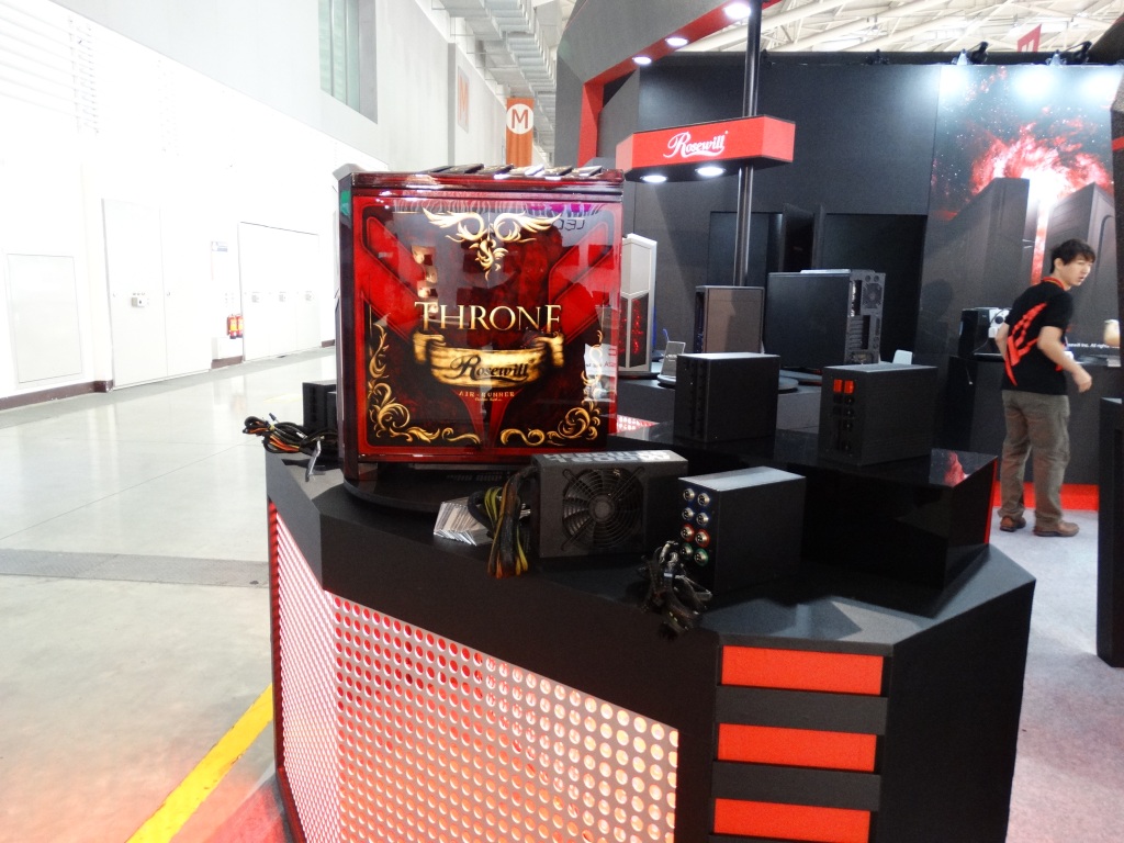 The most stunning display came in the custom-built Rosewill Rise system, featuring dual Intel E5 Xeons, 3-way SLI EVGA GeFORCE GTX TITAN graphics cards, and 2 x 280mm water cooling units all in a nice package featuring the ultimate high end components.