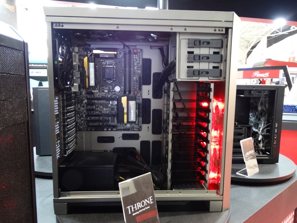 The NEUTRON, STEALTH, THRONE, and Rise gaming chassis were up next, followed by the upgraded RK-9000 mechanical keyboards highlighting the world’s first dual-LED backlit mechanical keyboard – the HELIOS RK-9200.