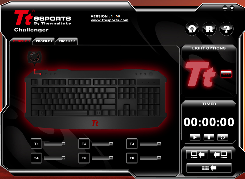 Thermaltake Tt eSPORTS also included their own software which allows for you to modify the keyboards settings to adequately suit your gaming needs. As we have previously mentioned, the keyboard can be equipped with six different macro keys and modified for three different profiles. To quickly summarize, a macro key is a key on the keyboard that can perform a multitude of functions with a single press. This function is imperative to MMO (massively multiplayer online) games, which often require you to perform a bunch of different combinations.
