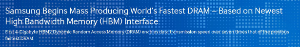 Samsung Announces Mass Production of World’s Fastest DRAM – Based on Latest High Bandwidth Memory (HBM) Interface