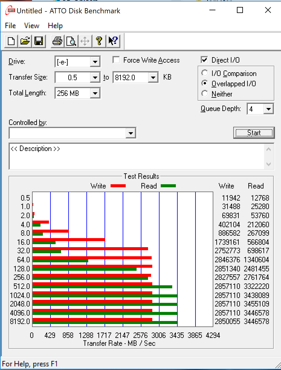 This particular result is from the WD Black but we can verify that both SSDs produced identical results. From this point forward, we won’t be including both unless there is a difference in performance that needs to be identified. Taking a look at this result, performance is top-tier at 3.4GB/s read and 2.8GB/s write and both appear to be solid SSDs as performance exhibits a gradual increase in tune with data sample size increase.