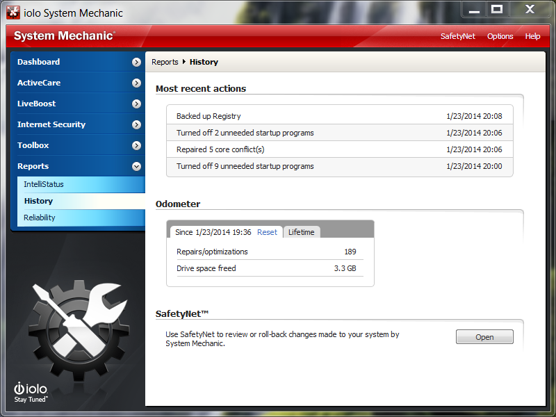 History reports: look at most recent System Mechanic activity, and logs of prior activity