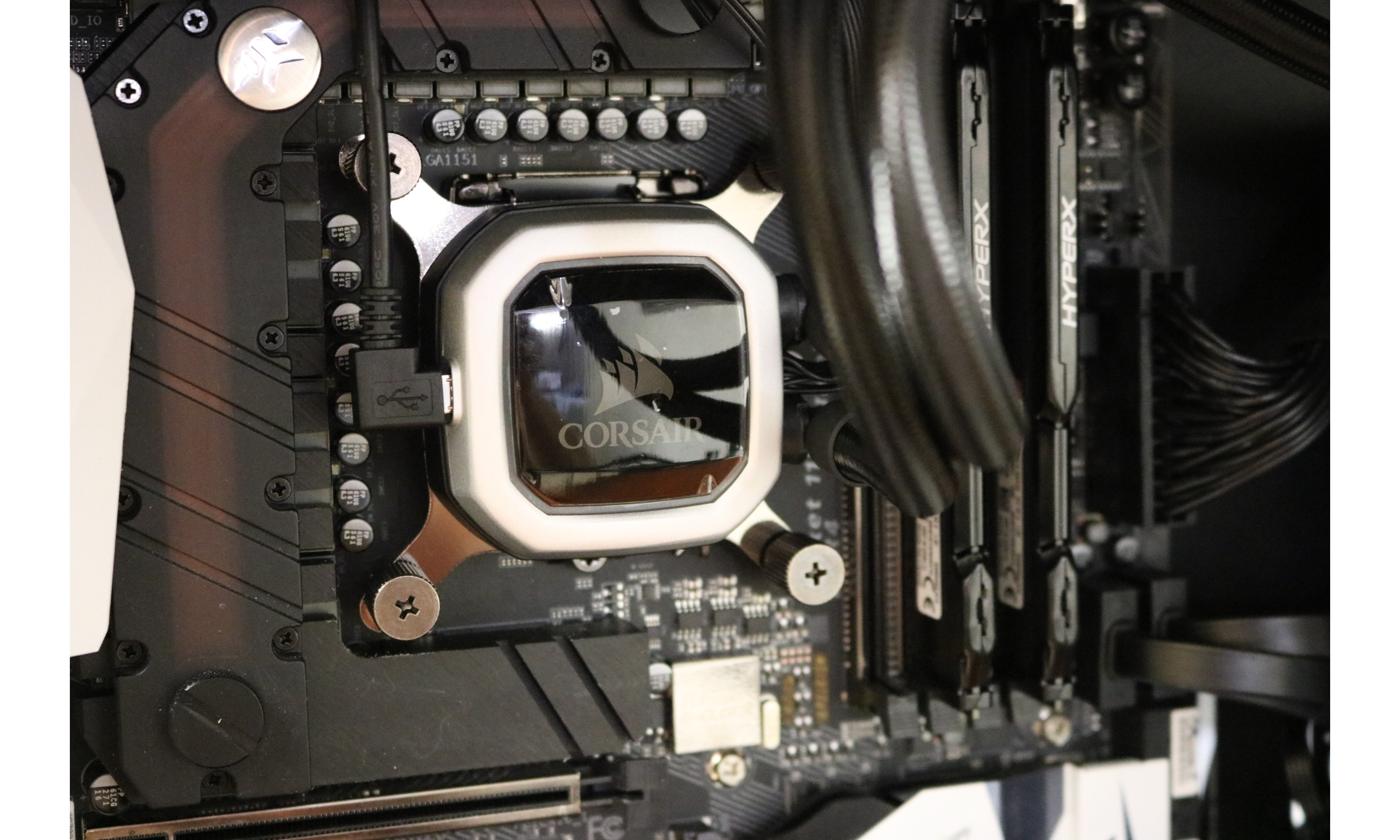 Coming off the pump were four separate connectors which made cable management a little difficult. The USB mobo connector was the biggest of these cables and runs straight off the left side of the cooler. We would like to see an attempt to make this a little less visible in the future. This is not a huge deal, just a nit picky thing we ran into.