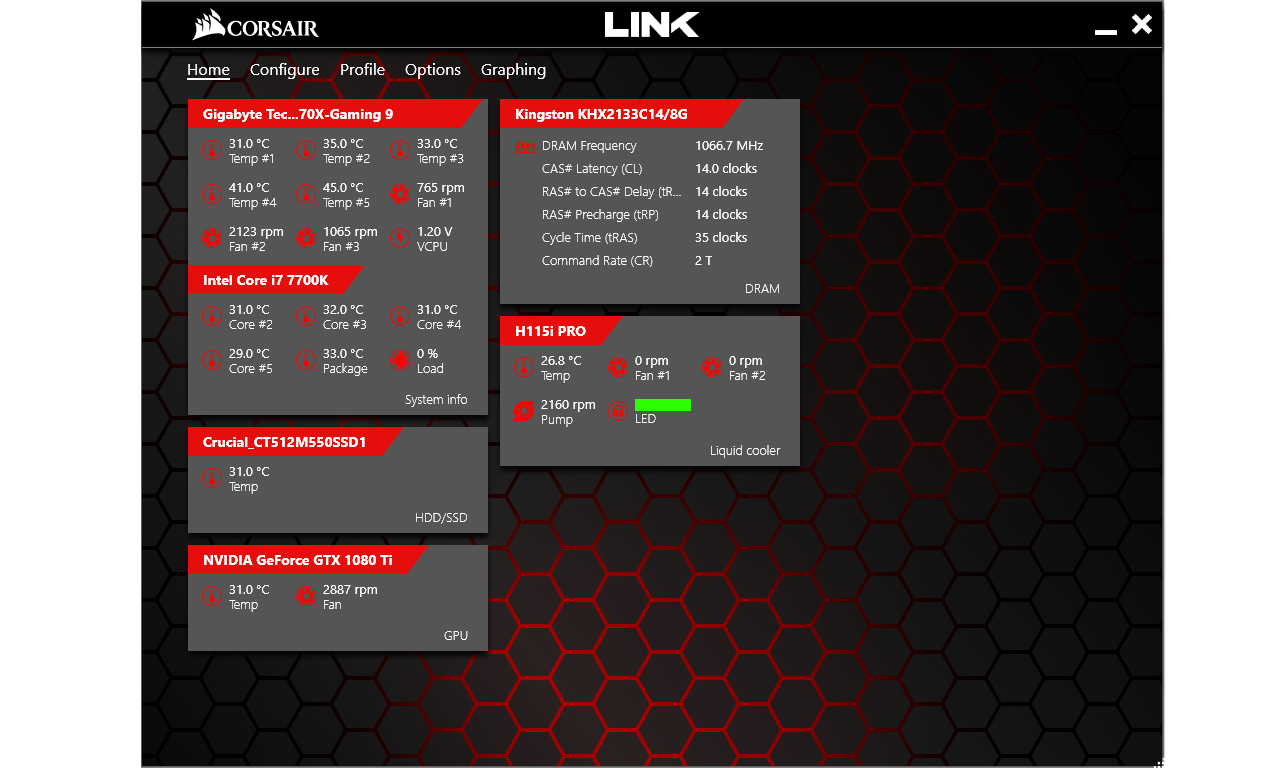 We like to see customization, especially when it comes to fan speeds, pump speeds, RGB lighting and System monitoring. All of these options be changed by Corsair Link. This program lets you change the RGB to match system lighting as well as monitor all temps and fan speeds in real-time. This is beneficial to overclockers who demand the most out of cooling as well as your average Joe who is just worrying about the longevity of the processor.