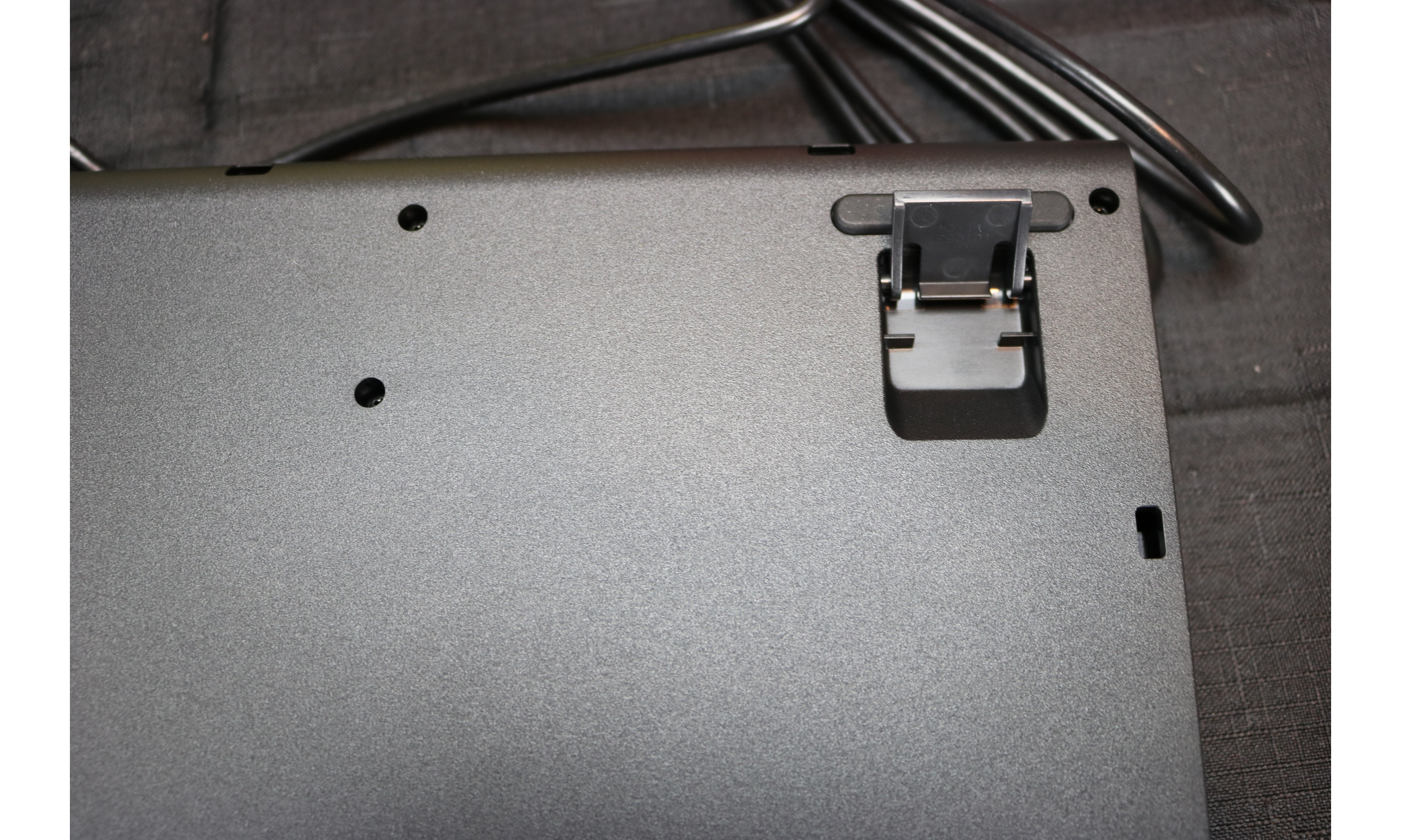 Flipped over we have two prop up levers and 6 rubber feet to prevent any sliding. If wrist rest was to be attached this also adds three more rubber feet to add to its un-movable posture.